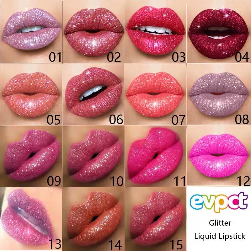 Brand evpct Sexy Shimmer Diamond Matte To Glitter Liquid Lipstick Long Lasting Waterproof Metallic Pearl Colour velvet Lipgloss Lip Makeup baume