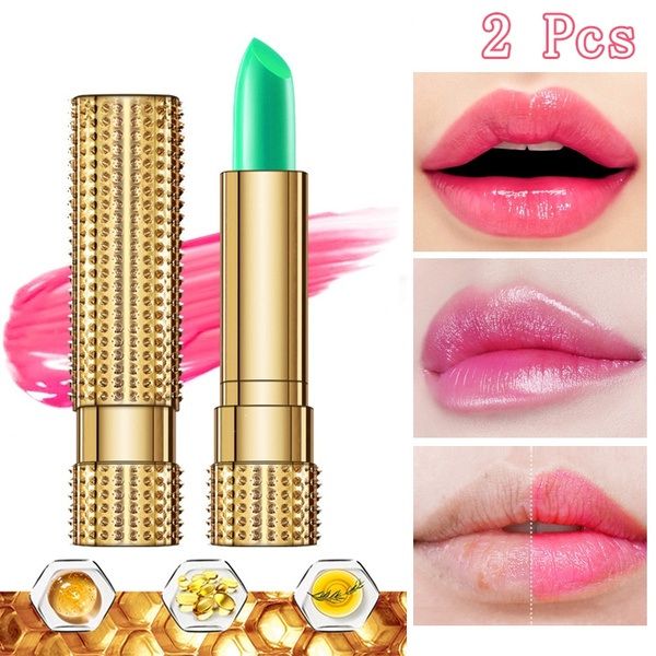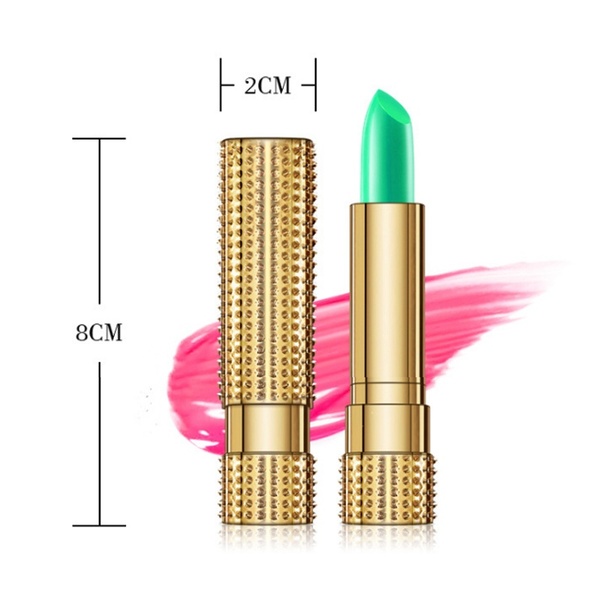Item: Color Change Lipstick Appearance Color: Gold Overall Dimensions: L7 x D2cm/2.7 x 0.78inch Available Length: 2.5cm/0.98inch Color will change to Pinkish or Rose Red according to body chemistry With Aloe Vera, long-lasting moisturizing your lip Weight: 5g Package: 2pcs Moisturizing Lip Stick
