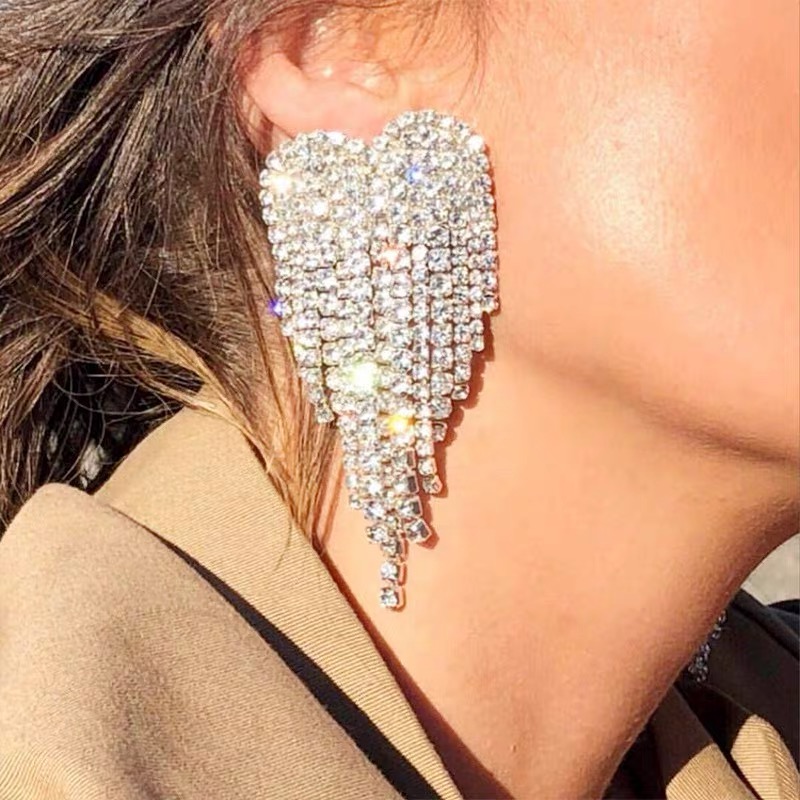 Sparkle diamante big earrings, perfect for wedding party or any important events. Color: Silver, Gold Length: #1 approx. #2 approx. #3 approx.