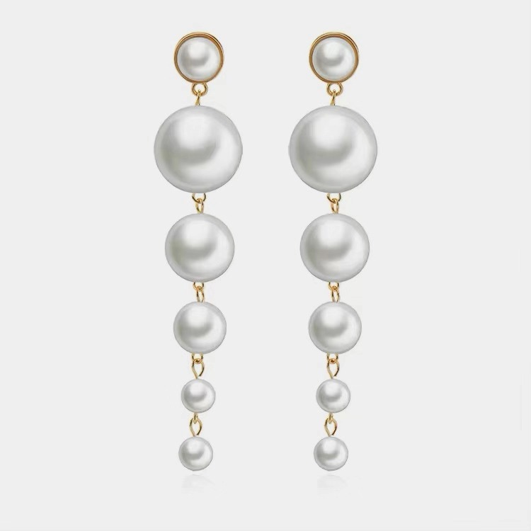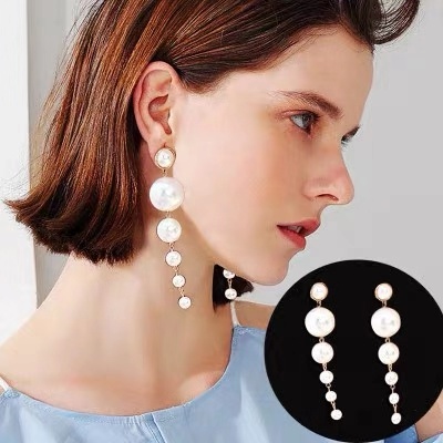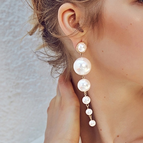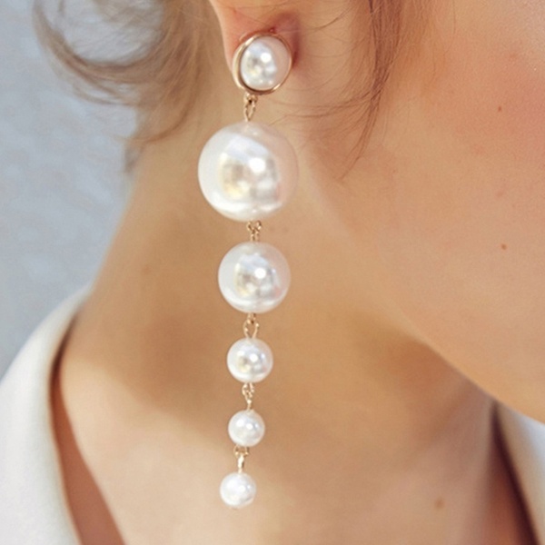 Product :Simulated Pearl Earrings Material:Earrings Material:Zinc Alloy Simulated Pearl Size:9.5cm Weight:22.5G Package include: 1 pair pearl earring