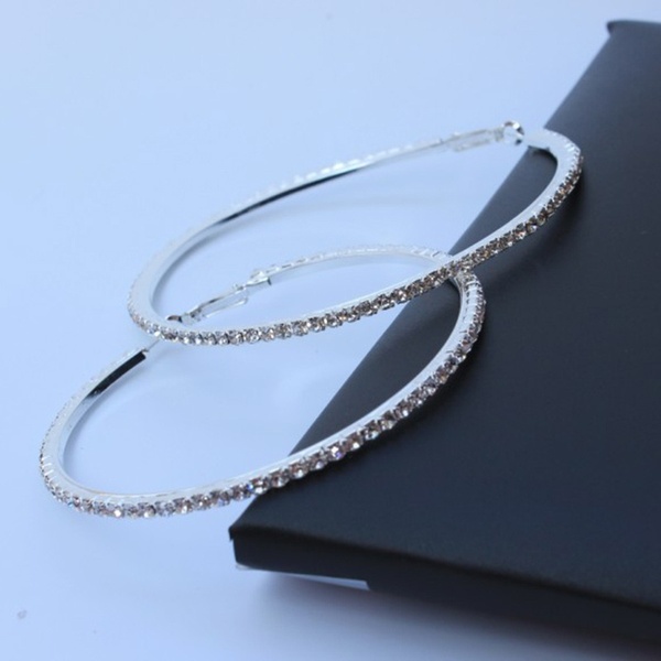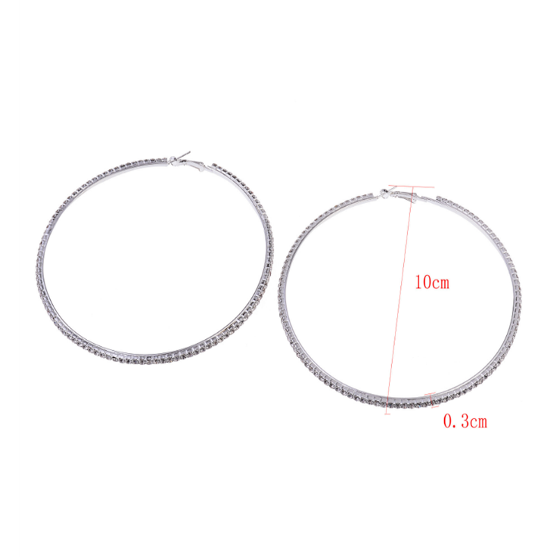 Shining 10CM Big Circle Earrings Simple Earrings Big Circle Silver Hoop Earrings for Women