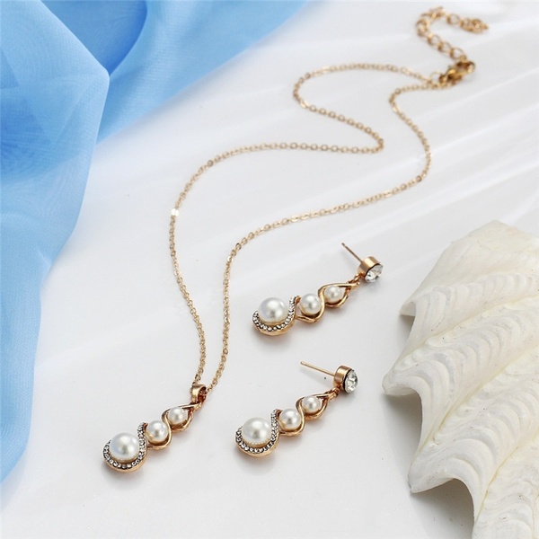 Pearls Crystal Pendant Necklace Drop Earring Set Wedding Charm Dangle Earrings Set Bridal Women Fashion Necklaces Jewelry Wedding Accessories
