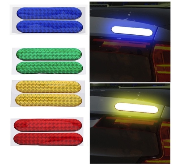100% Brand new & high quality It is a kind of light can reflective in the dark and the night, and play a role of alertness and warning in our life Effective accident prevention Can be attached to any position of the car, special to the car wheel eyebrow rim, door edge etc Material: PET Color: Red, Yellow, Blue, Green Size: 10.6x2.3cm Package Included: 2Pcs Reflective Car Sticker