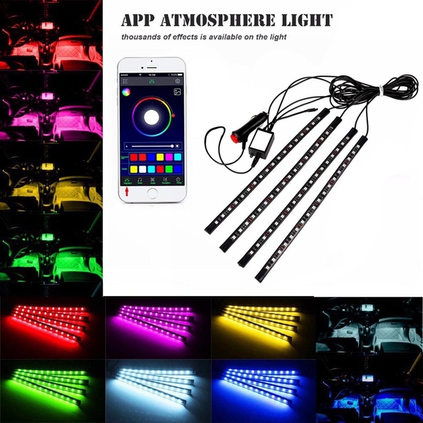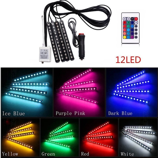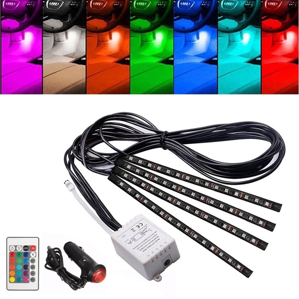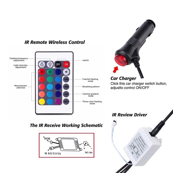 Features: -This is about one set of decoration light -Simple design for you a beautiful, exotic and romantic interior. -Double-side adhesive tap available for installation. -It can be used on the car interior floor or dash. -High quality RGB LED strip lights, waterproof, anti-collision, anti-corrosion. -Wireless IR control, change the color as you wish. -Control: Music,voice/ Remote/App control,3 ways to control -Remote Function: on/off,change color,change flashing pattern,change flshing speed Installation: Directly to the product configuration into the cigarette lighter socket cigarette lighter socket can be, without any wires modification. includes 1 set x Car Atmosphere Neon Light Set