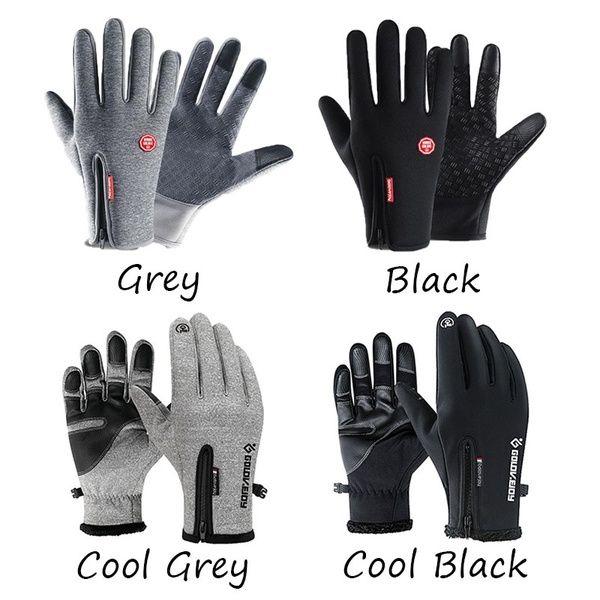 Colors: Black, Grey, Cool Black, Cool Grey Size: S,M, L, XL, XXL(The Size Chart is in the picture) Material:high dentity chinlon ( Waterproof and windproof ) Waterproof Zipper Polar fleece inside(keep warm enduring) Anti-skid Leather for the palm FEATURES 1. Laminated wind barrier provides critical wind-resistance. 2. High Quality Waterproof Zipper closure provides a secure fit with outerwear. 3. Keep warm to help regulate your body temperature. 4. High dentity chinlon reinforcement prevents tearing and repels water. 5. Embossed Leather on the palm 6. Layered palm construction reduces material bunching. 7. Removable spring clip keeps your gloves organized for easy storage. 8. Touchscreen Leather on all fingers. 9. Machine washable.