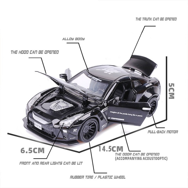 Godzilla High Quality 1:32 Exquisite Manufacturing Alloy Simulation Car skyline Tokyo Ares GTR Super racing Car Model Collection Sound and Light Back Children Toy Car