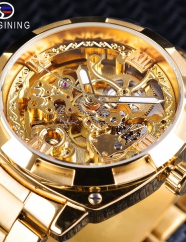 New Arrival High Quality Men Luxury Skeleton Automatic Winding Mechanical Watches Gold Stainless Steel Waterproof