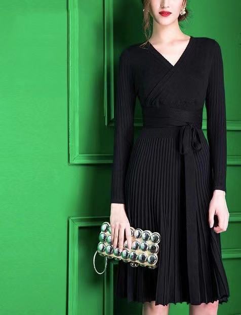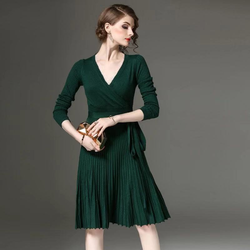 Elegant Dress Spring Office Dresses For Women Decorative Sashes V Neck Solid Plus Size Vintage Vestidos